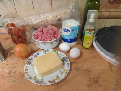 фарш - 0,5 кг, лаваш тонкий длинный - 3 штуки,