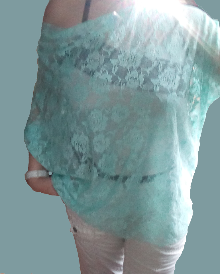 Носить её можно и играя вырезом-качелями, и спустив на одно плечо,надев под тунику контрастный топ,если ткань туники,как у меня , прозрачная.