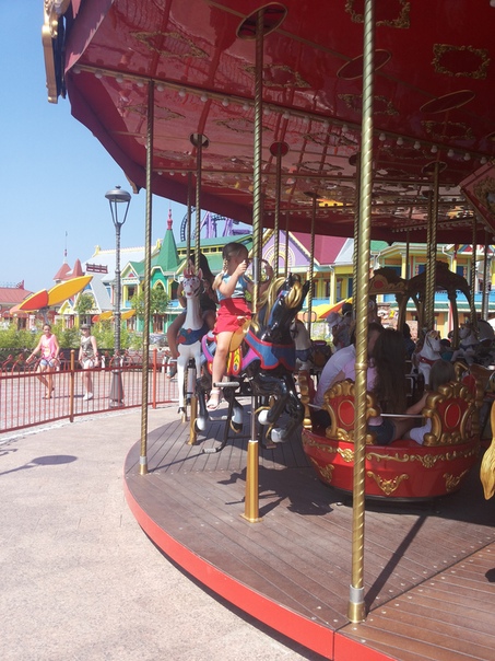 А здесь как в фильмах из детства. Карусель с лошадками. Когда наступает вечер, на карусели зажигаются огни. Красота неописуемая.