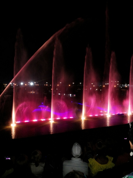 В целом, мне не очень понравилось - а именно: очень резкие повороты направо-налево. Падения вниз вопринимались отлично. Ребенок сидел с расширенными глазами. Думала, напугалась. Но потом она заявила, что приятно щекотало в животе. Наш человек! Когда созрела на второй заход, сказав, что снова хочет испытать щекочущее чувство в животике - было поздно...ушли на шоу фонтанов, которым и закончился наш поход в Сочи-парк. Зрелище неописуемое. Танец воды с различной подсветкой и фейерверками. На мой взгляд, высота фонтанов была не менее 30 метров.