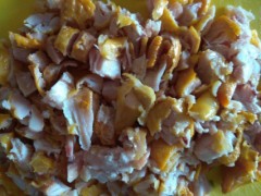 * курочку режем кубиками и добавляем ко всем ингредиентам.