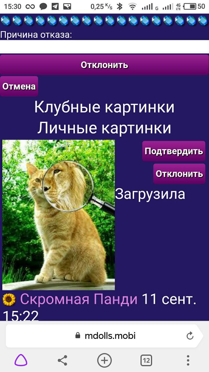 При отклонении картинки появляется поле, где я пишу причину отказа.