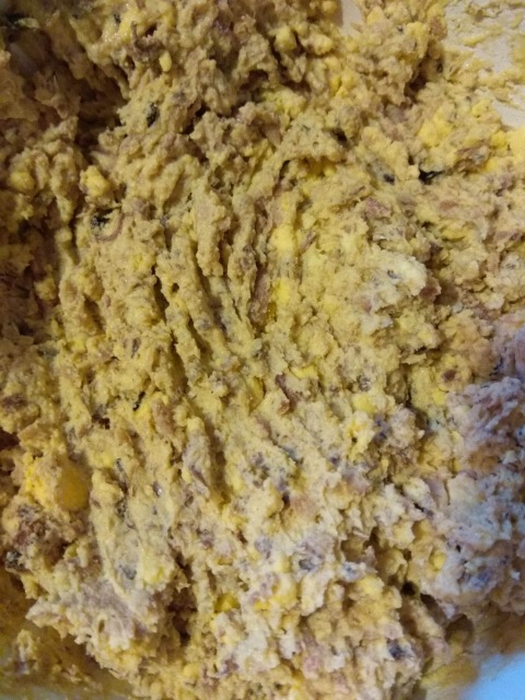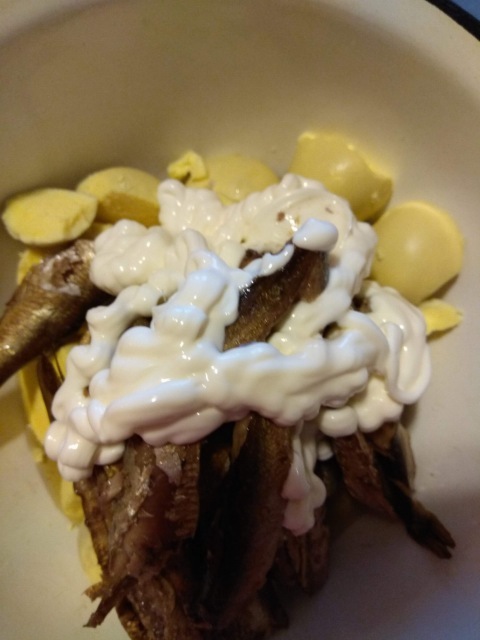 Как и желтки, - рыбу нужно хорошенько размять вилочкой.