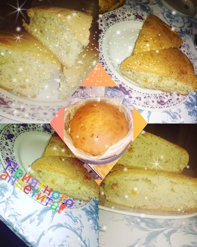 Смешиваем кефир с манкой и оставляем минут на 30, чтобы манка увеличилась в объёме. Затем вбиваем яйца, добавляем сахар и соду. Хорошенько вымешиваем. Теперь вливаем масло и всыпаем просеянную муку. Ещё раз вымешиваем тесто. Остальные добавки, как то - мак, цукаты и прочее добавляем на ваш выбор. У меня сегодня мак и курага. Выливаем тесто в форму и отправляем в духовку минут на 40 при t°180.
