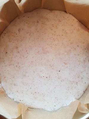 Выложить в разъёмную форму 26 см и выпекать примерно 40 мин при температуре 180 градусов
