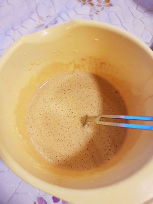 Смешать кофе с желтками.