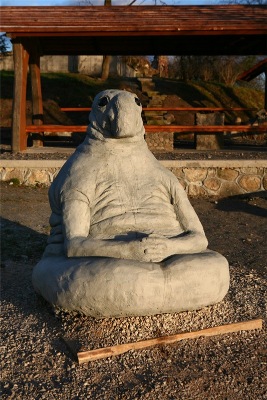 Не так давно в городе Порхов появился Ждун. Он сидит на берегу реки Шелонь и задумчиво смотрит вдаль.