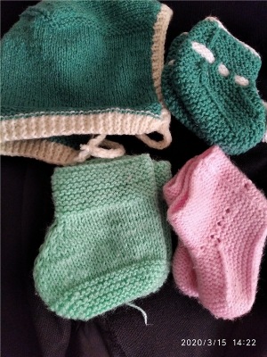 Так появились пинетки, шапочки, пледик. Сейчас начала вязать костюмчик.