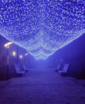 Невероятная аллея находится в парке. Ночью она обретает очень красивый вид, удивляет своими огоньками и очень романтично смотрится.
