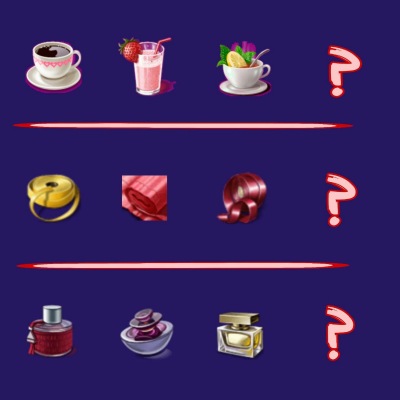Цель игры : уловить логику и найти последний элемент в каждой строчке. Это может быть логическая последовательность, общее свойство предметов и т.п.