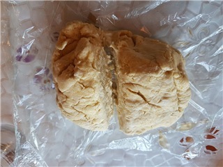 Достаём тесто и делим на две части, одна больше, другая меньше