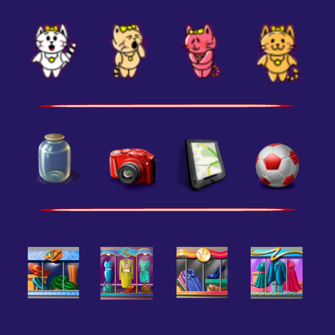 3 строка - магазин Виторе Венециано (последний) (в нём такой же набор видов одежды, но отсутствуют сумки/либо во всех остальных есть иконки над витриной)