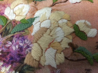 В этой работе используется для вышивки как обычное мулине, так и шерсть. Шерсть