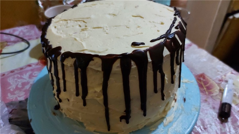 4. Вынуть торт из холодильника и полить глазурью с помощью шприца или кондитерского мешка.