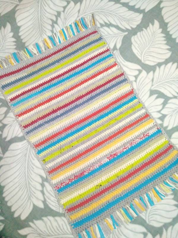 Такой же пряжей я связала коврик в ванную. Вязала столбиком с накидом.