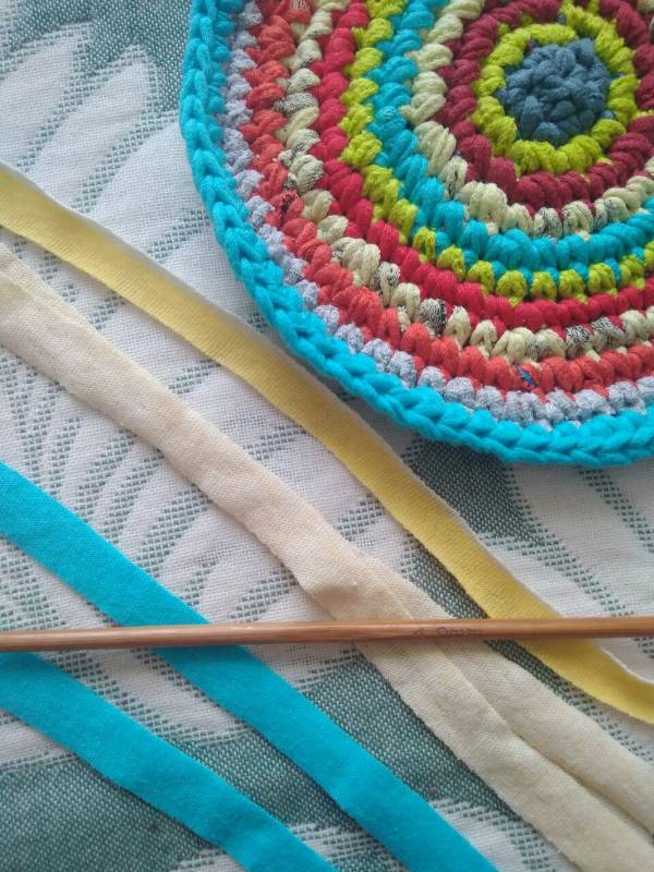 Делюсь идеей, как можно креативно использовать старые вещи и говорю я трикотажных футболках. И чем ярче будут их цвета, тем красочнее получится в итоге изделие.