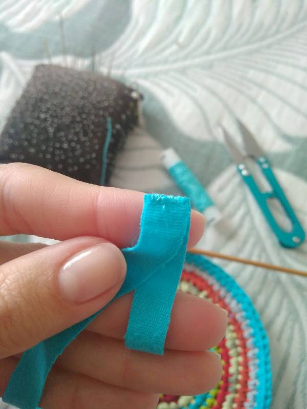 Далее максимально растягиваем сшитые полосы, чтобы они закрутились. Швы стыков я прокручивала пальцами, чтобы они были аккуратнее и мягче.