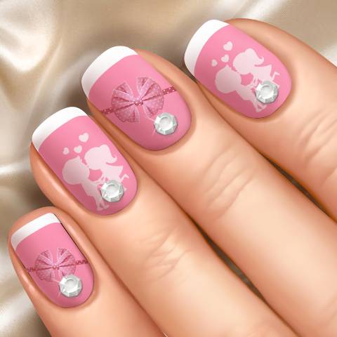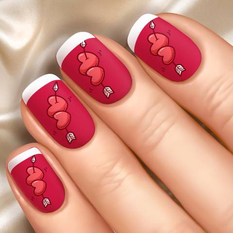 Френч — ещё одна классика, которая отлично подходит для Дня влюблённых. Для романтического вида можно добавить сердечки и разнообразить нежными розовыми оттенками. Такой стиль напоминает подарочную упаковку, в которую заворачивать приятные сюрпризы для любимых.