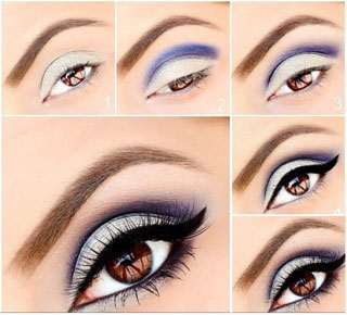 Теперь перейдем к макияжу. Тут не все так просто, как с маникюром. Все же надо учитывать Ваш типаж: блондинка Вы или брюнетка, карие у Вас глаза или голубые. Вот несколько вариантов вечернего макияжа.