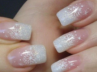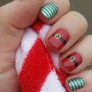 Помимо просто различных вариантов французского маникюра можно еще и рисовать рисунки на новогоднюю тему: снежинки, снег, полоски конфетные, елочки и даже ремешки Санта Клауса