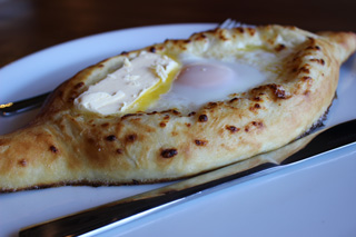 В Грузию я отправилась со своей очень хорошей подругой, и мы провели там всего 3 дня и, к сожалению, не успели побывать везде, где нам хотелось, но этих коротких 3х дней было достаточно, чтобы влюбиться в эту страну сильно и навсегда. Вернувшись домой, у меня было ощущение, что меня не было месяц, столько положительных эмоций было получено за это скоротечное путешествие. Мы уже давно решили с Анной, так зовут мою подругу, что на страшном суде мы пойдем с ней по одной статье – чревоугодие. Задолго до поездки нами был составлен перечень блюд, которые мы хотим попробовать в Грузии. Под номером «один», а также «два» и «три» в этом списке была гордость Грузии, Король хорошего настроения, Повелитель дружеских застолий, Владыка сытого желудка – Хачапури! Сколько нами было съедено хачапури, не помню, но мы их пробовали везде, где только могли и когда могли. Существует множество вариаций этого блюда. Они могут быть открытыми и закрытыми, круглыми, овальными, треугольными в виде конвертиков и в форме лодочки. Для их приготовления используются разные сыры, иногда с добавлением зелени, а иногда даже картофеля или фасоли. Рецепт приготовления хачапури зависит от региона, где он был придуман. Самыми известными и популярными видами хачапури являются хачапури по-имеретински и по-мегрельски, оба этих вида круглые и для их приготовления используется меретинский сыр (именно он, не сулугуни), разница в том, что хачапури по-мегрельски посыпают еще сверху сыром, и конечно хачапури по-аджарски, которые готовятся в форме лодочки, сверху добавляется кусочек сливочного масла и заливается яйцо. Как говорит одна наша общая с Аней знакомая «Памятник холестерину». Но оторваться от этого памятника просто невозможно, и приходится осознанно жертвовать талией!