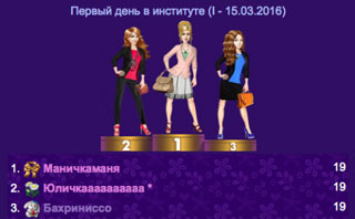 Маничкаманя: Вы знаете, как-то спонтанно получилось. Мы когда в клуб приглашали модельера, мне достался пиджачок 47 уровня. А у меня был 44, я очень хотела его надеть. И вот сегодня я наконец взяла 47 ур. И оделась на работу. Вот у меня и получился такой наряд. Я посмотрела, по теме подходит, и решила так сходить на подиум. А когда у меня было 19 голосов, я очень обрадовалась. Я очень надеялась попасть в 10-ку. А о первом месте даже боялась думать.