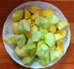 Приготовьте все ингредиенты. Пока готовите, включите духовку на максимум, чтобы прогреть хорошо. Помойте курочку, почистите картофель и нарежьте крупными дольками (можно не резать, если картофелины среднего размера). Помойте и очистите от кожуры и сердцевины яблочки, порежьте на 4 части.