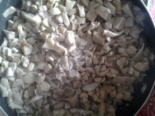 Грибы-вешенки нарезаем и жарим. Можно любые грибы, но я люблю именно эти.