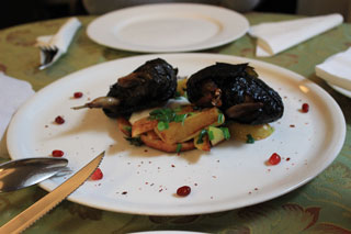 Собираясь в Армению, конечно же, мы с другом прорабатывали туристический маршрут и составляли список мест, которые мы хотели посетить, но признаюсь честно, пакуя чемодан, я в первую очередь думала о еде, о блюдах, которые хочется попробовать, и о местах, где можно будет это сделать, так как я являюсь большой фанаткой кавказской кухни. Первым заказанным блюдом после перелета и размещения в отеле в Ереване была долма – смесь из рубленного мяса (говядины или баранины) и риса с добавлением специй, завернутая в виноградные листья. Существует множество вариаций приготовления долмы: с использованием свежих или консервированных виноградных листьев, растительного или сливочного масла, разного набора специй и даже с заменой мясного фарша на небольшие кусочки филе. Также существует два вариант ее подачи: холодной в качестве закуски или горячей в качестве основного блюда. Мы брали долму в нескольких местах, и каждый раз при небольших вкусовых отличиях она была великолепна. Самые оригинальные виды долмы мы отведали в ресторане «Долмама». К их числу, как мне кажется, можно смело отнести блюдо Перепелка «Долмама» – малюсенькие тушки перепелок, приготовленные в виноградных листьях. Если вы будете в Ереване, обязательно загляните в этот уютный ресторанчик по адресу ул. Пушкина 10, который покоряет не только вкусной едой и отличным обслуживанием, но и оригинальным интерьером.