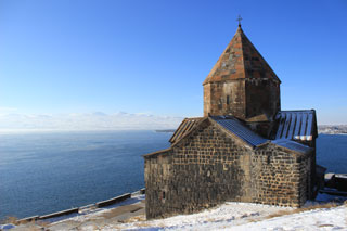 Из достопримечательностей во время поездки мы в первую очередь мечтали увидеть главный армянский символ – гору Арарат. К сожалению, у январской морозной погоды, погрузившей всю Араратскую равнину в туман, были на этот счет совершенно другие планы, и, даже находясь в монастыре Хор Вирап рядом с турецкой границей, откуда в хорошую погоду открывается самый лучший вид на Арарат, мы не смогли разглядеть даже очертаний этого исполина. Лишь один раз, возвращаясь с необыкновенной красоты горного озера Севан и стоящего на его берегу древнего монастыря Севанаванк, нам удалось увидеть вдалеке поверх тумана 2 величественные снежные шапки большого и малого Арарата, находящихся на территории Турции уже с 1921 года, но по-прежнему являющихся визитной карточкой Армении, с которыми связано так много легенд, приданий, вымышленных и документально подтвержденных реальных исторических событий.