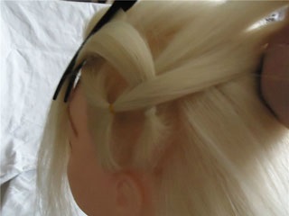 Начинаем работу: отделяем небольшую прядку сбоку у уха.