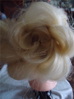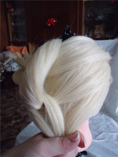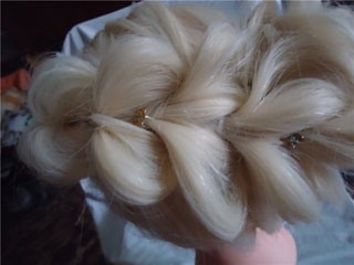 А сейчас я вам покажу, как можно сделать праздничную прическу. Для этого мы хвостик заворачиваем колечком и укладываем сбоку возле уха. Фиксируем все невидимками в середине и по краям. На фото видно – получается похоже на цветок. Фиксируем лаком для волос.