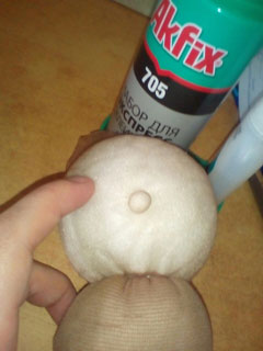 Чтоб формы пупса были пышнее и без вмятин,засовываем иголку и приподнимаем наполнитель в тех местах, где это требуется.