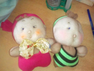 Теперь проявим фантазию и наряжаем пупса на ваш вкус.После пришиваем ручки по бокам. Румянами делаем щечки и готово.