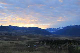 В Ойантаитамбо я вернулась на поезде около 17:00 часов, забрала чемодан из камеры хранения в гостинице и отправилась в Куско, окруженная насыщенными тонами пламенеющего закатного неба. В Куско мы приехали, когда было уже темно. Выйдя из машины и запрокинув голову наверх в попытке размять шею после долгой дороги, я первый раз сначала моего южно-американского приключения увидела луну, а точнее месяц. Это был какой-то другой месяц. Он смотрел «рогами» не в бок, как в нашем полушарии и широте, а строго наверх, и висел не на уровне взгляда, а абсолютно вертикально над головой, окруженный незнакомыми созвездиями. Зарегистрировавшись в отеле, отнеся вещи в номер и надев теплую одежду (ночи в горах холодные), я поднялась на крышу гостиницы с чашкой горячего чая и долго лежала там на лавочке, смотря на новый для себя, неизвестный, усыпанный миллионами ярких огней, медленно двигающийся, бесконечный путь и луну, которая смотрит в другую сторону.