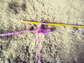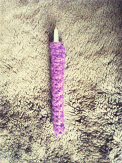 Так у нас получился 1 ряд. Я сделала около 22 рядов, но всё зависит от размера вашего предмета для письма. Теперь вытягиваем петельку (длину выбирайте сами), разрезаем пополам, затягиваем нитку. Вот у нас готова следующая фигура.