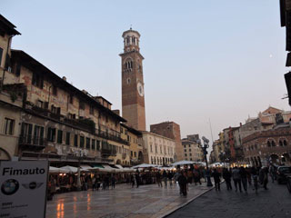 Старинная площадь Вероны – Пьяцца делле Эрбе. На ней сохранились дворцы, стены которых расписаны фресками.