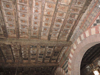 Сохранившиеся полностью или частично фрески вообще можно увидеть в самых неожиданных местах – на потолках магазинов или, как здесь, в портике перед входом в здание полиции.