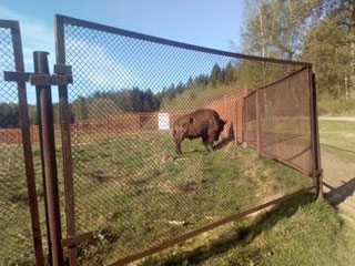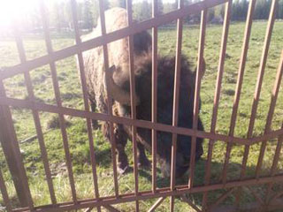 Всего в зубровнике два зубробизона (Миша и Августин) и две бизонихи (Манана и Мадам). На территории есть небольшой загончик для зубров: