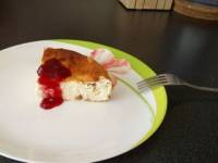 Ждем, когда запеканка немного остынет, делим на порции и добавляем любимое варенье, сметану или сгущенное молоко – на ваш вкус..