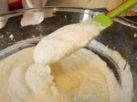 Теперь добавим сметану. Возможно, ее потребуется больше или меньше, чем указано выше. С ее помощью регулируем густоту смеси, она не должна быть слишком жидкой.
